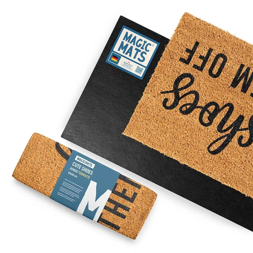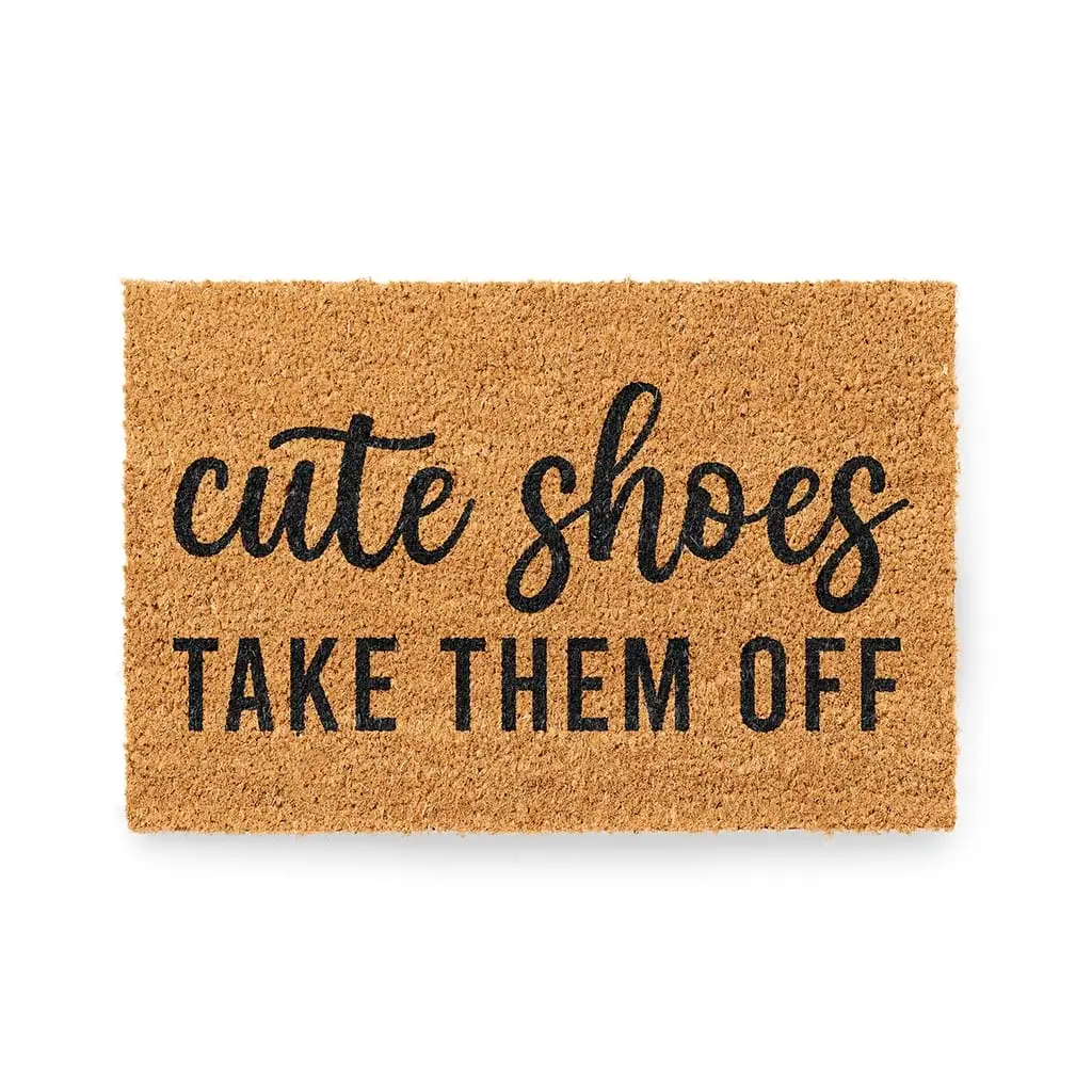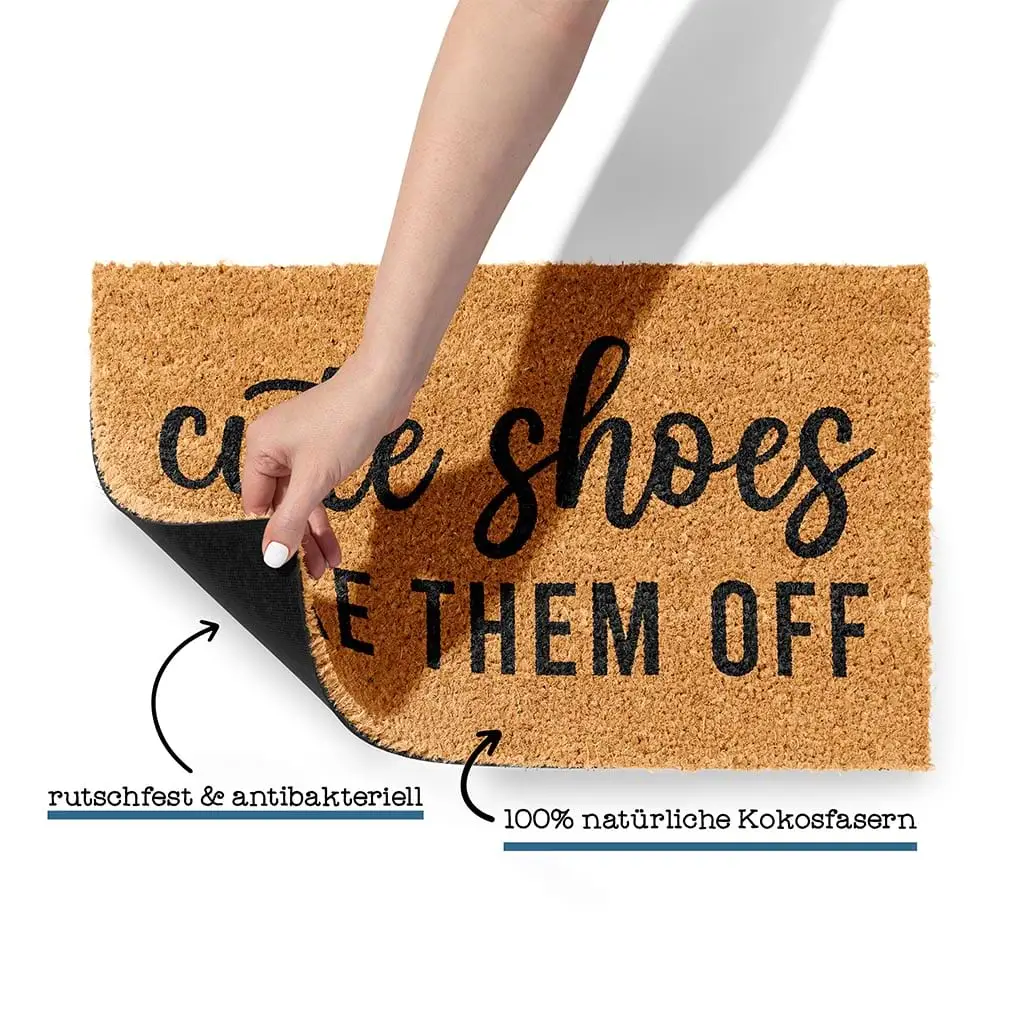 Lustige Fußmatte mit Spruch ‚Cute Shoes Take Them Off‘ | Kokosmatte | Einweihungsgeschenk | Türmatte