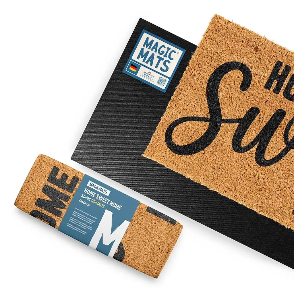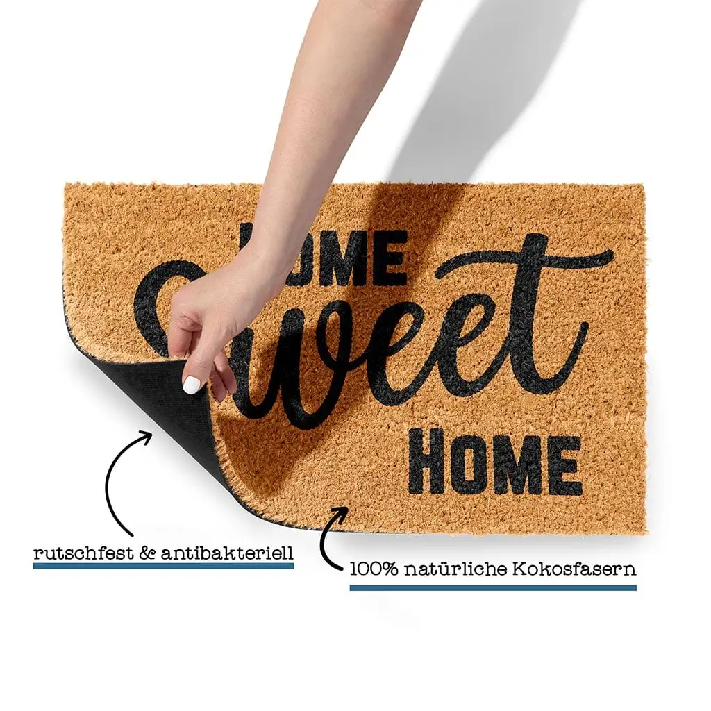 Verleihe deiner Haustür eine einladende Note mit unserer hochwertigen und stylischen Fußmatte mit dem Schriftzug: Home Sweet Home.