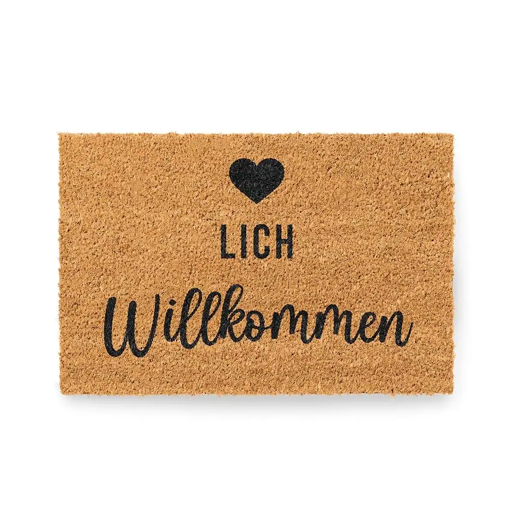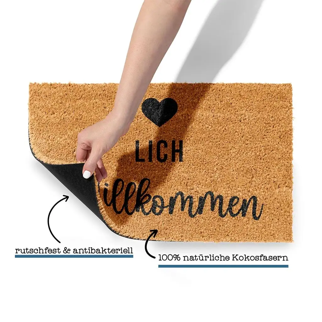 Verleihe deiner Haustür eine freundliche Note mit unserer hochwertigen und stylischen Fußmatte mit dem einladenden Schriftzug: Herzlich Willkommen.