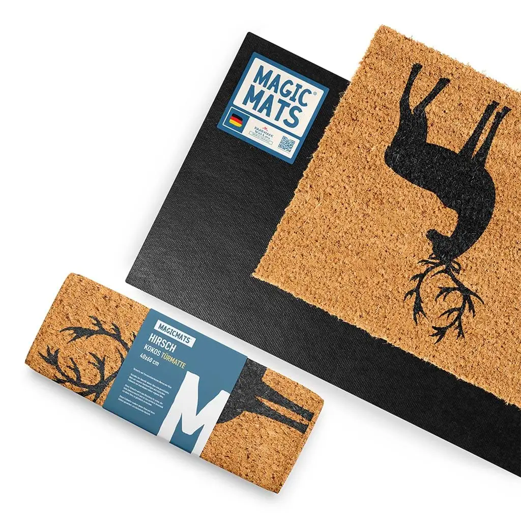Verleihe deiner Haustür eine Note der Natur mit unserer hochwertigen und stylischen Fußmatte mit einem Hirsch Aufdruck.